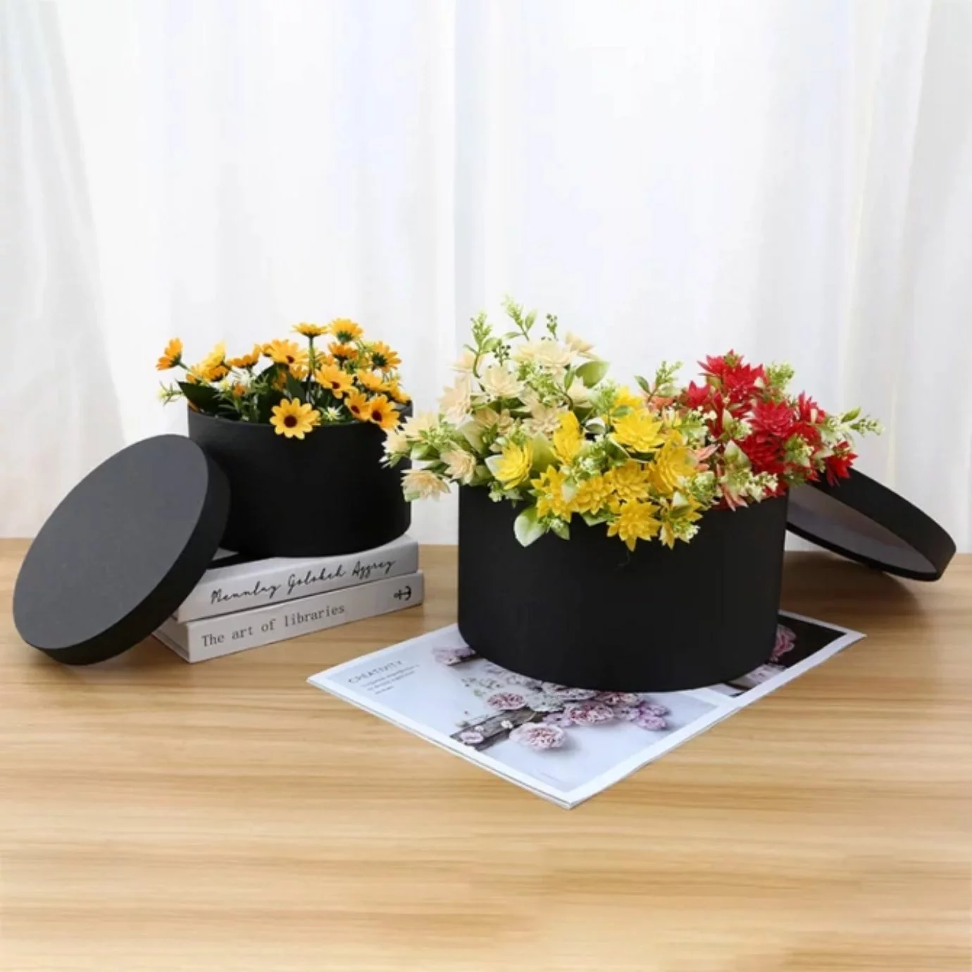 Moyennant sa texture lisse résistante et à sa conception pointilleuse, notre boite ronde carton assure une barrière contre les dommages potentiels tels que les déformations et les dégâts dus à une exposition prolongée au soleil et à la lumière. En étant à l’abri de ces menaces, vos chapeaux, bonnets, sacs, foulards ou encore vos casquettes restent indemnes préservant ainsi leur forme originelle.
